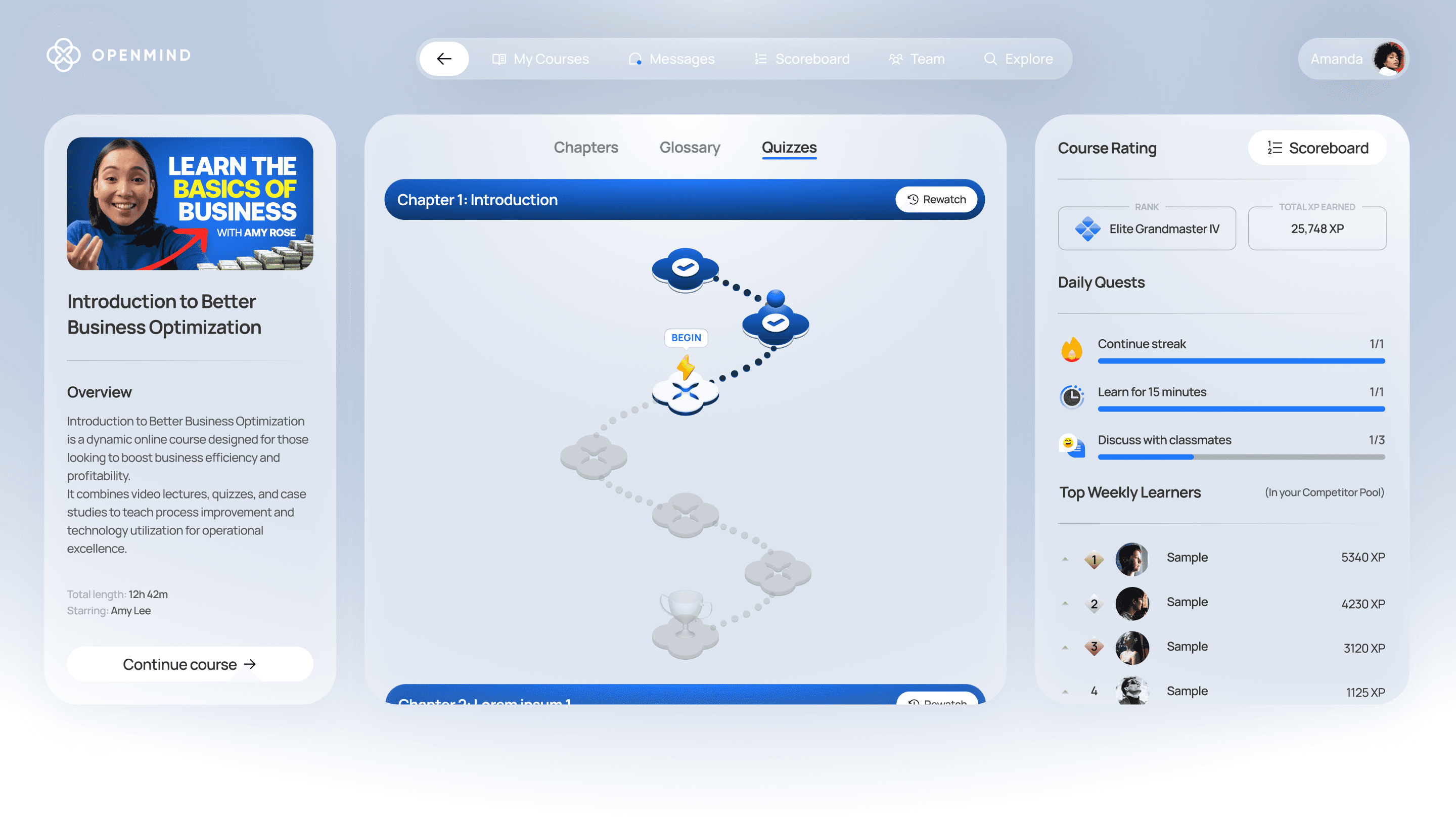 Revolutionizing how people interact with online education platforms in a way that the content is the focus so the user can learn faster.