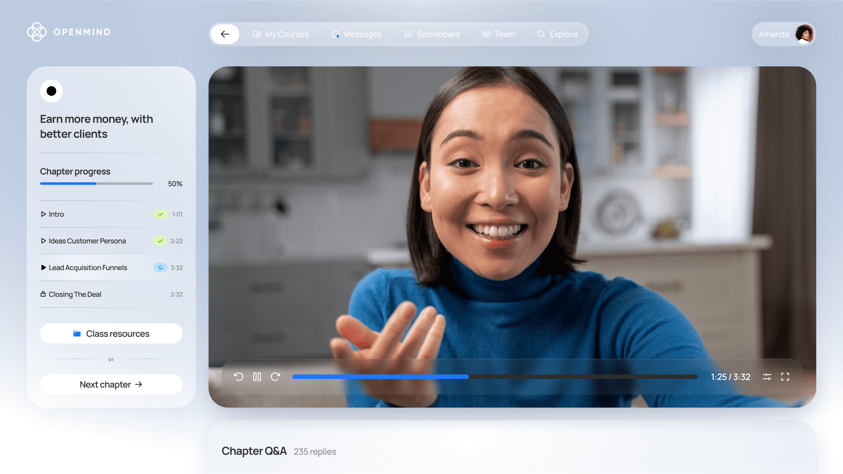 OpenMind is an educational platform where users can either watch educational content or become educators and upload their content and earn commissions for providing quality content that gets people watching. I've taken care of UX/UI and graphic design.